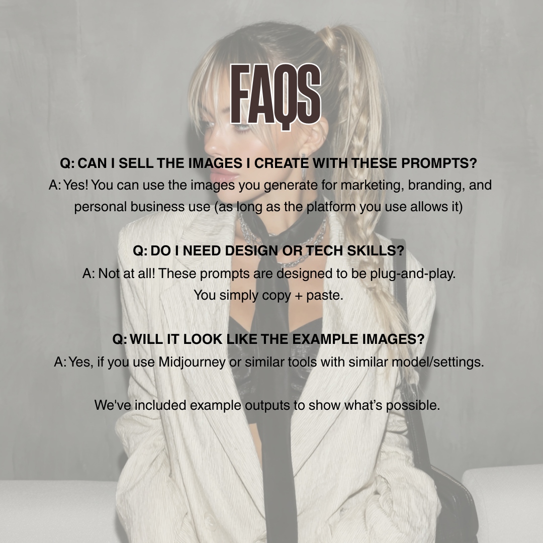 No wasted hours. No complicated tech. Just copy, paste, and create imagery that looks like it belongs in a high-end magazine.